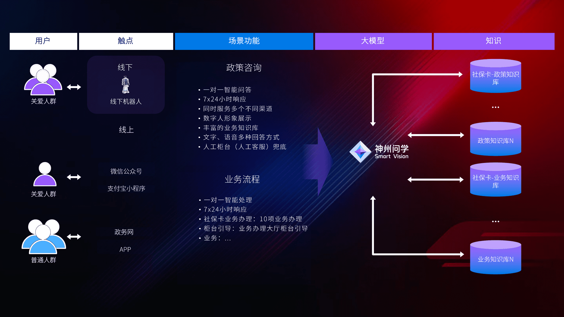 • 线上线下全覆盖:线上提供微信公众号、、、支付宝小程序、、、、政务网、、app多种渠道,,与线下机器人形成完整服务体系。。。。
